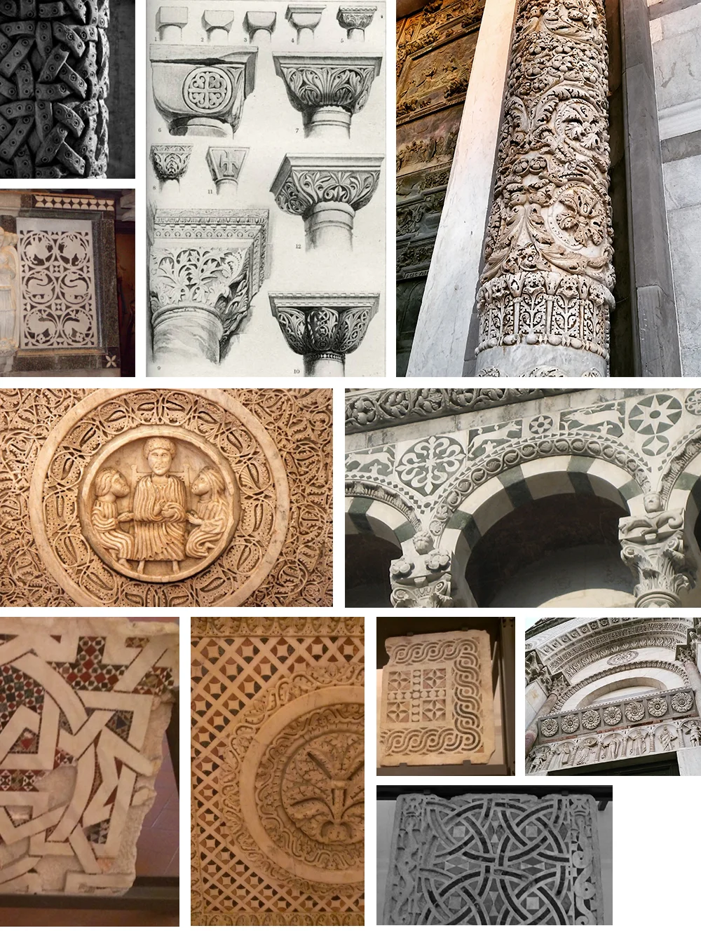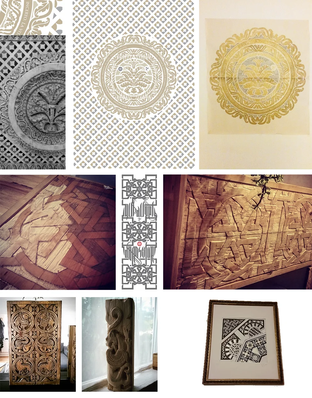 These are 3 carved panels I made, trying to replicate the patterns and motifs of 2 main artefacts located in Pisa and Anagni (Italy). My aim was to extrapolate the beauty of geometry and twine.
