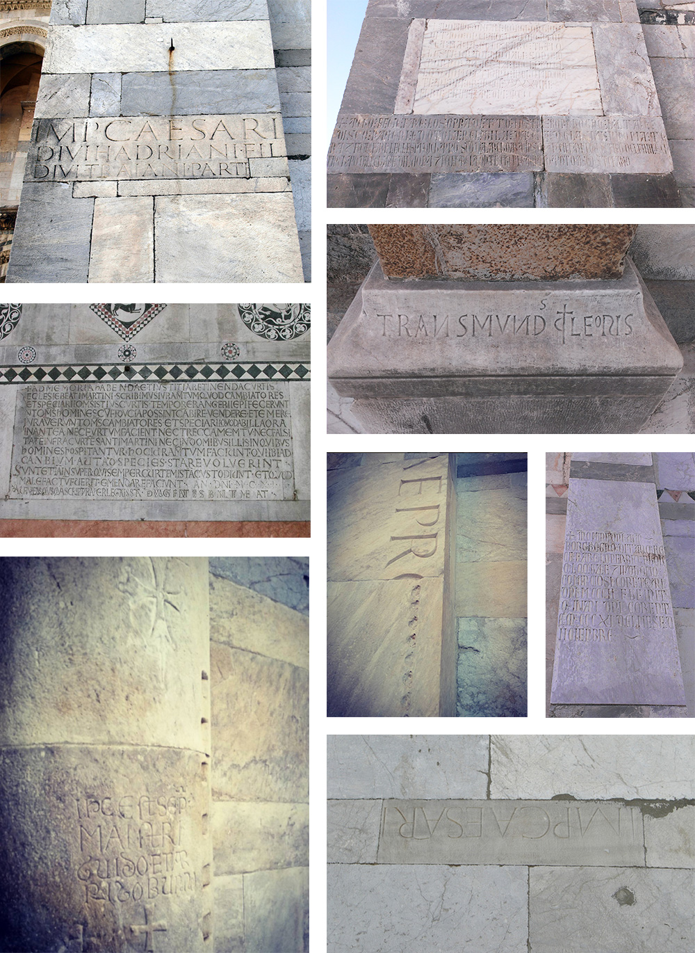 I grew up in Pisa and I have been always attracted by the carved inscriptions on the marble walls, here some interesting examples I spotted walking around the cathedral.